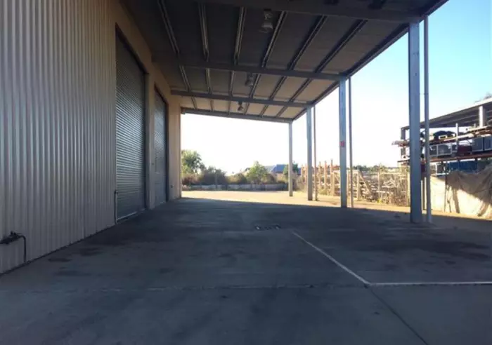 This massive shed has space galore with 288 M2 under roof with front, rear and side access.  It has offices inside and mezzanine floor with facilities.  With an 177M2 awning all down the right side of the building.  With several car parks to the front with concrete pavement for articulated vehicle turning with a radius of 12.5m.  Plus space to park more vehicles and machinery.  It is worthy of an inspection call now to arrange.