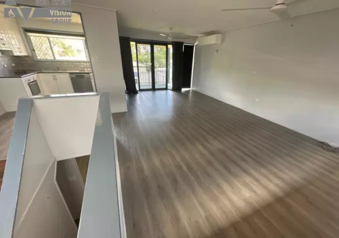 The internal stairs have extra storage under. Stairs take you to the 2nd level to the very well presented modern kitchen with range hood, ceramic cook top, wall oven, microwave nook, dishwasher, pumping for the fridge and servery to the Dining area. The lounge/dining is open and spacious with double sliding doors taking you out to the back deck. Heading down the hallway that also has storage cupboards you find three more bedrooms with Air conditioning, ceiling fans and shelving. The tidy bathroom has the separate shower to bath and the toilet in next to the bathroom.