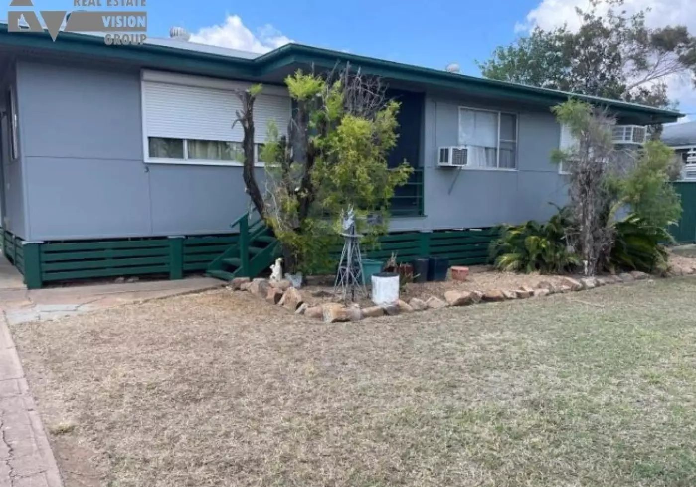 Entering up the front steps with the roll-up privacy blind to the security screen door into the open Lounge to dining area with ceiling fan and a large air conditioner and modern look vinyl flooring, we have a 3 bedroom home. Bedrooms have built-ins, Air conditioning & ceiling fans.  The kitchen is walk through to the Dining with tidy Cabinetry, free standing stove with range hood.  The master bedroom has the external shutters to block out the day light for that night shift nap.  The tidy bathroom has the shower over the bath and separate toilet.  Laundry is off the kitchen that takes you to the back yard.  Two bay powered shed has some cabinetry ready to store those tools, plus the 3 x 6 garden shed.  High fences to three sides and a fenced off area for the animals in the back yard.  Paved and concreted under cover area to the back for entertainment.  Newly installed large hot water system.  Whirly birds to the roof for that extra cooling in our hot weather.  The Western side of the house has a double colour bond gate and paved area for that caravan with external power available and small colour bond locker.  Established garden beds to the front.  Single car cover to the Eastern side with an extra paved area for parking.  This property is ready for viewing and can be vacant on settlement.  Call now to arrange a viewing